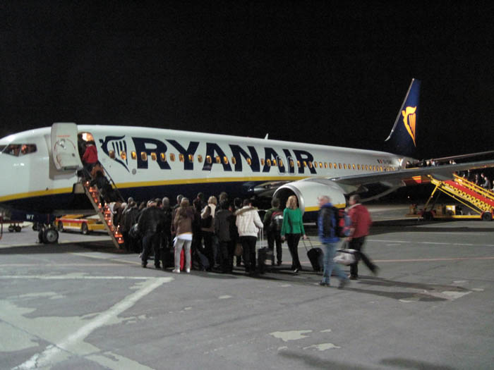 Sehr lustig war auch, dass sich Ryanair zur Handgepäckkontrolle wieder etwas Neues hat einfallen lassen: Vor dem Boarding kommt ein 3köpfiges Kontrollteam in den Abflugbereich und ruft "Guten Tag, Handgepäckkontrolle". Dann wird jedes Handgepäckstück von denen mal angefasst und so für leicht genug befunden. Die kontrollierten Gepäckstücke bekommen dann einen gelben Punkt aufgeklebt...